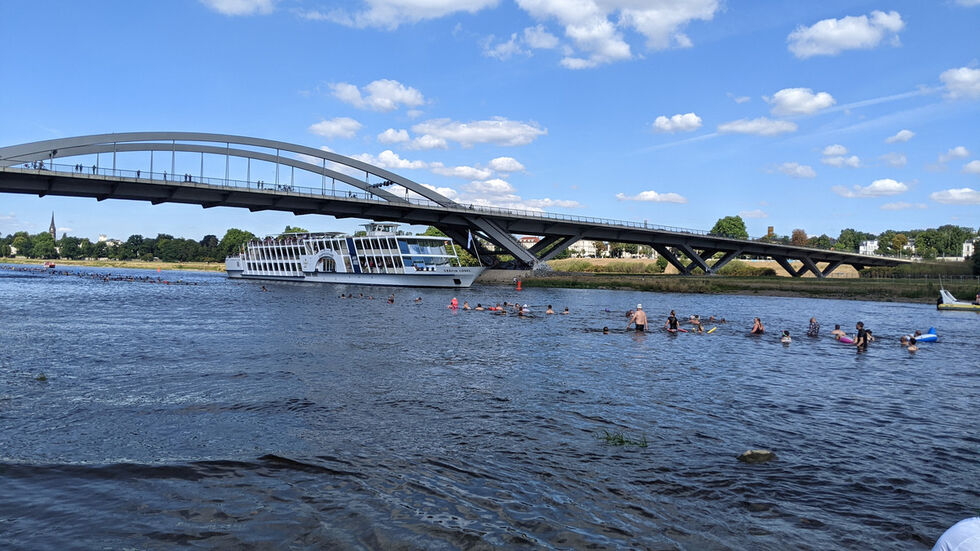 Das 25. Elbeschwimmen am Sonntagvormittag war ein voller Erfolg. Laut Veranstalter Daniel Baumann haben 1843 Menschen teilgenommen. Das ist ein neuer Rekord! Dazu trug natürlich auch das herrliche Wetter und eine Wassertemperatur von 21 Grad bei. Das Alter der Schwimmer lag zwischen 7 und 86 Jahren. Start war unterhalb des Blauen Wunders und dann ging es 3,5, Kilometer elbabwärts zum Fährgarten Johannstadt.