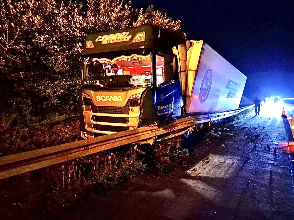 Der Fahrer blieb unverletzt. Der Schaden beläuft sich laut Polizei auf gut 40.000 Euro. Der Sattelzug wurde vom ADAC abgeschleppt. Die rechte Spur war zeitweise gesperrt.
