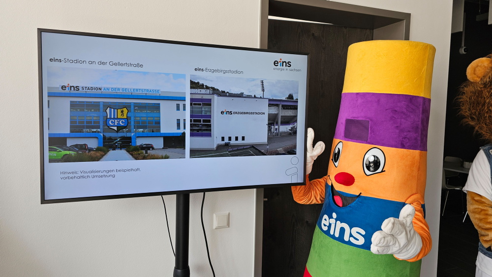 - Die Stadien des CFC und des FCE heißen jetzt „eins Stadion an der Gellertstraße“ und „eins Erzgebirgsstadion“. Der Umbau soll in den nächsten 14 Tagen fertig sein.