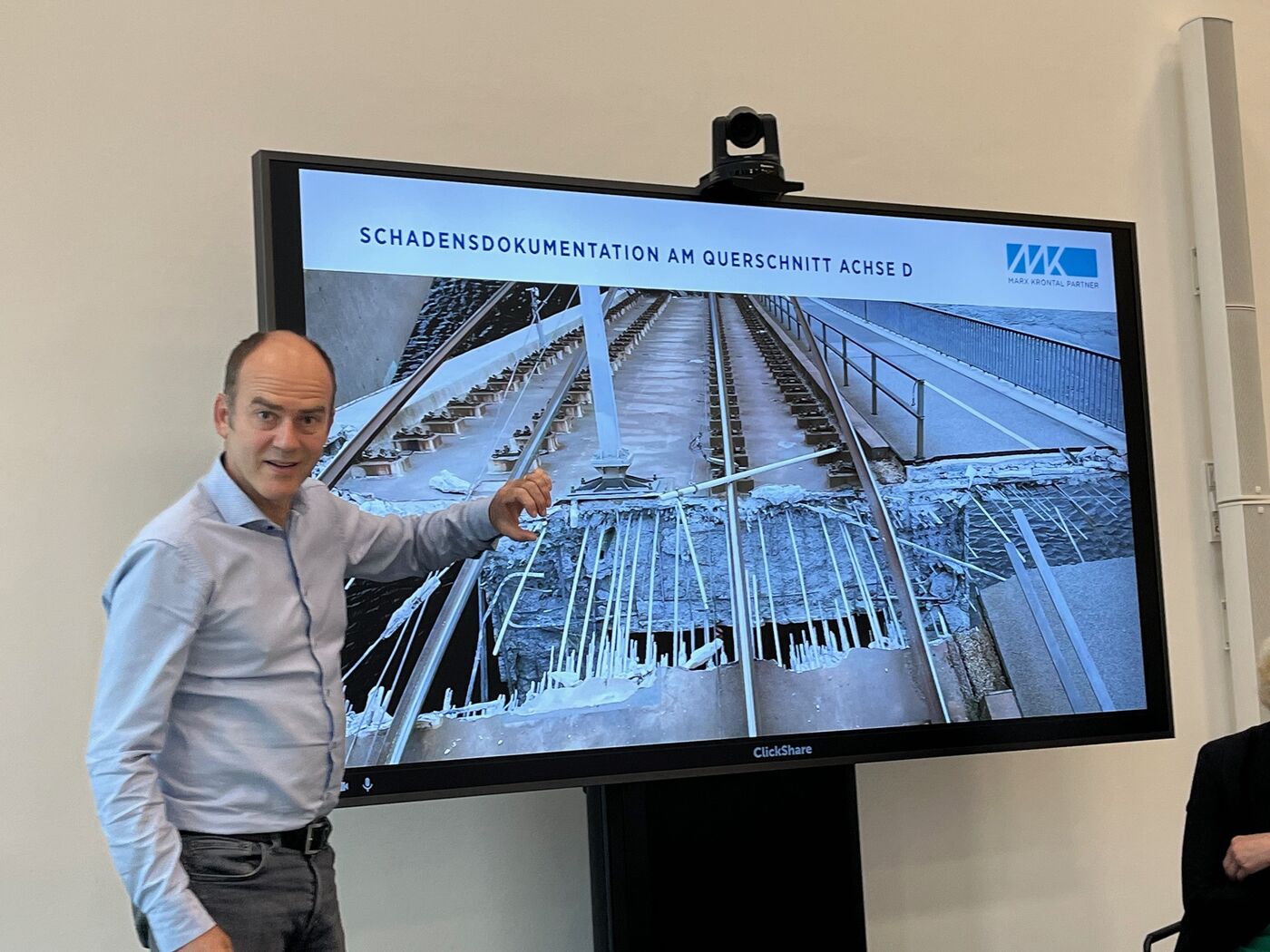 Das jedoch bis dahin unbemerkt, da das sichere Brücken-Prüfverfahren der Schallemmissionsmessung nicht zum Einsatz kam, aber auch nicht vorgeschrieben war. Das 800-seitige Gutachten wertete Bautagebücher aus den Siebziger Jahren, Fotos und sogar Daten von US-Sateliten von 2015 aus. „Dabei konnten wir schon sehen, dass ich der Teil C anders verformte als die anderen beiden Brückenteile“, so Marx.