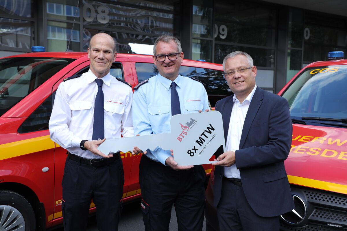 Für Dresdens Stadtteilfeuerwehren gibt es neue Fahrzeuge. Wirtschaftsbürgermeister Jan Pratzka hat am Montag insgesamt acht neue Mannschaftstransportwagen (MTW) übergeben. Darüber konnten sich die Stadtteilfeuerwehren aus Bühlau, Mobschatz, Pappritz, Pillnitz, Weißig, Weixdorf, Niedersedlitz und Cossebaude freuen.
