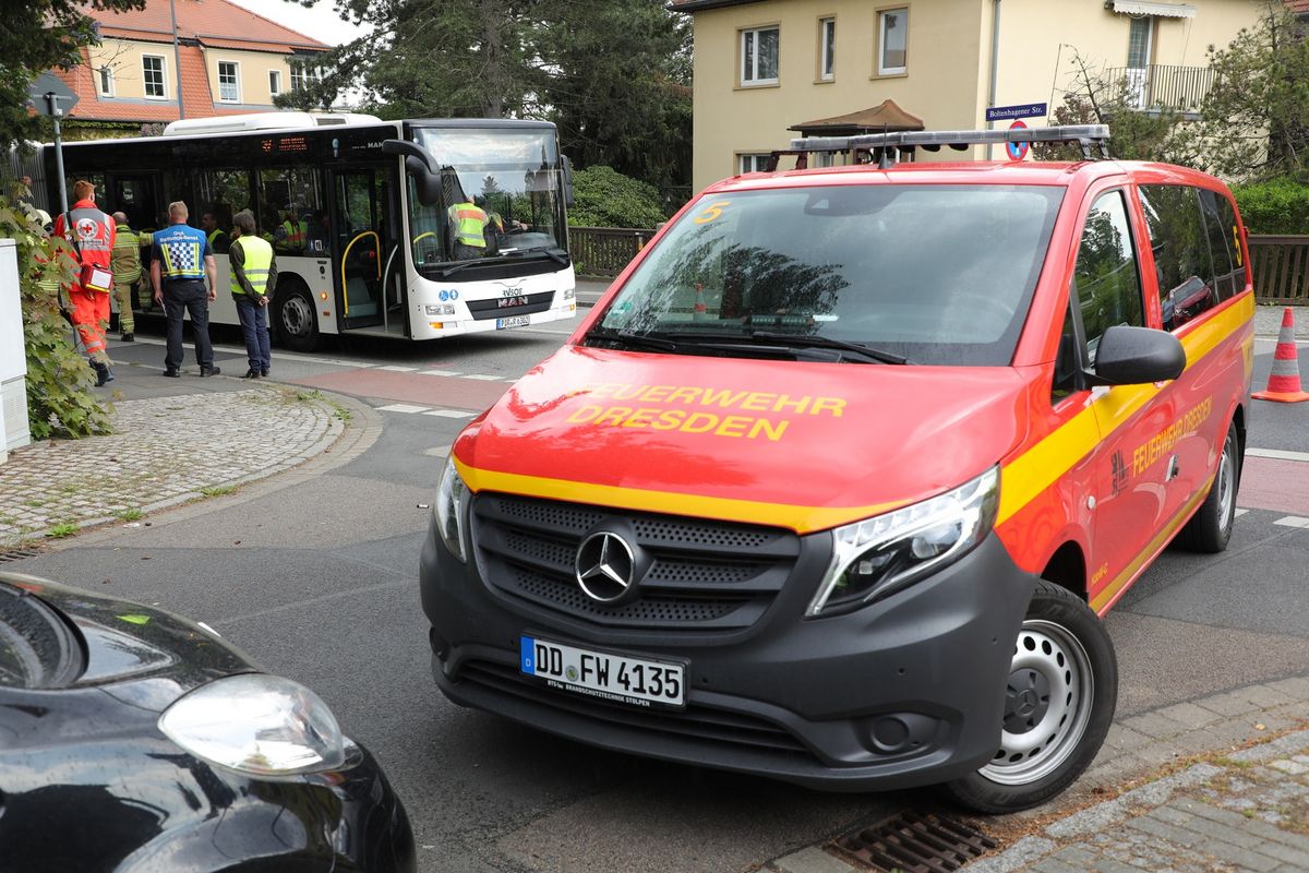 Zwei Notärzte und die Besatzungen von vier Rettungswagen waren im Einsatz. Sie sichteten und versorgten alle Betroffenen. Ein Teil der Kinder wurde von den Eltern an der Einsatzstelle abgeholt, während die anderen Kinder mit einem Ersatzbus zum geplanten Zielort gebracht wurden. Die Besatzung eines Löschfahrzeuges der Feuer- und Rettungswache Albertstadt sicherte die Einsatzstelle und unterstützte die Einsatzmaßnahmen des Rettungsdienstes.