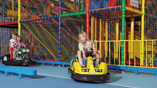 Sollte das Wetter einmal nicht mitspielen, können sich Familien auf die große YOKI AHORN Spielwelt innen mit Fußballfeld, Hüpfburgen, Rutsche ins Bällebad, Piratenschiff, Kinderautos u.v.m. freuen.