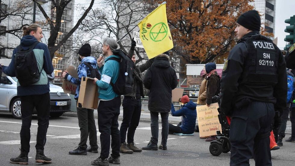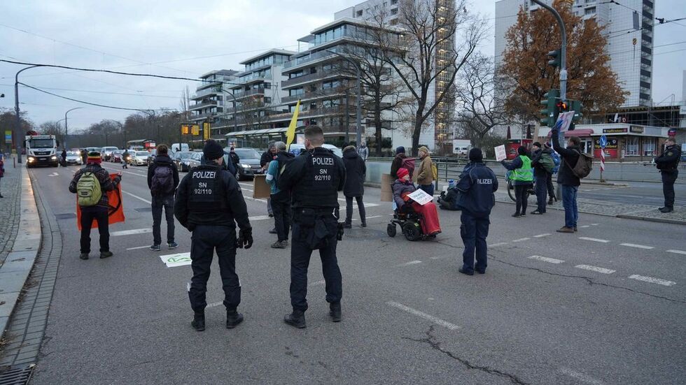 Klima-Extremisten haben am Freitag wieder den Verkehr am Straßburger Platz blockiert. Zwischen 8 und 9 Uhr mussten sich die Autofahrer auf Sperrungen gefasst machen. Jeweils für vier Mal sieben Minuten besetzten die Teilnehmer der Gruppe „Extinction Rebellion“ mehrmals den Platz. Fahrräder, Straßenbahnen und Fahrzeuge mit Blaulicht können ungehindert passieren.