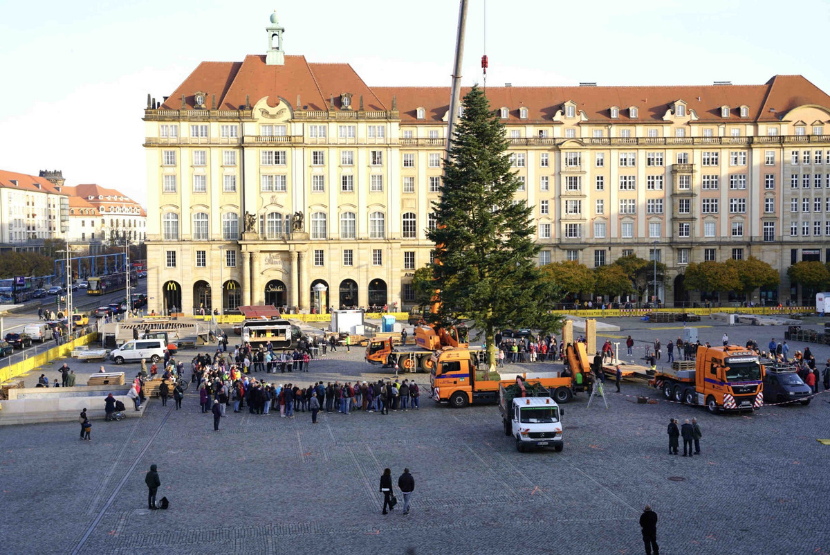 Exakt 237 Tage sind es von Karfreitag gerechnet noch bis zur Eröffnung des 589. Dresdner Striezelmarktes am 29. November 2023. Bereits einen Monat zuvor wird auf dem Altmarkt als erstes sichtbares Zeichen die Striezelmarkt-Tanne aufgerichtet, bevor dann der eigentliche Aufbau beginnt.