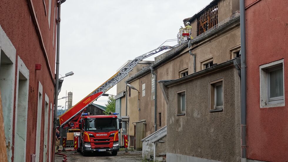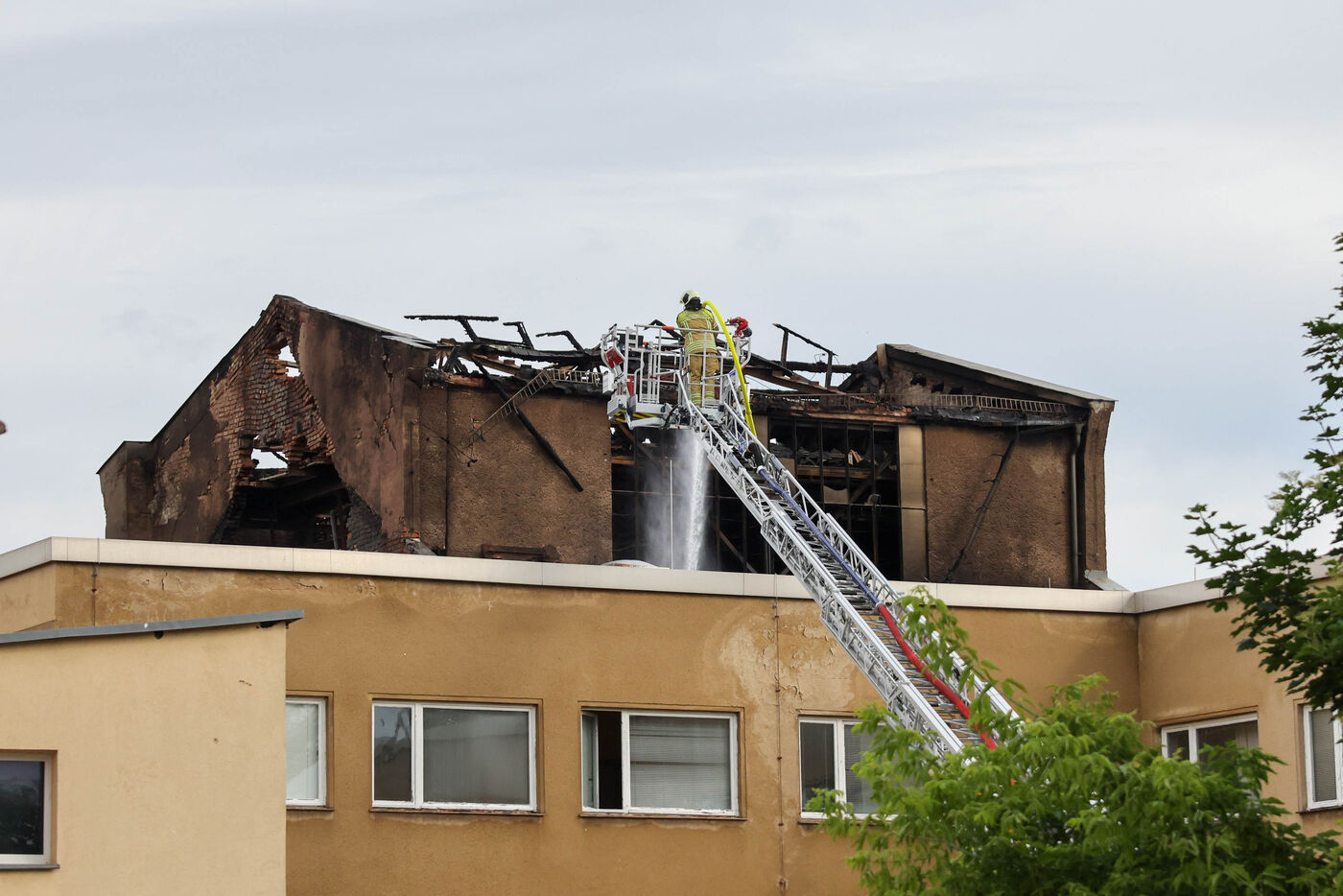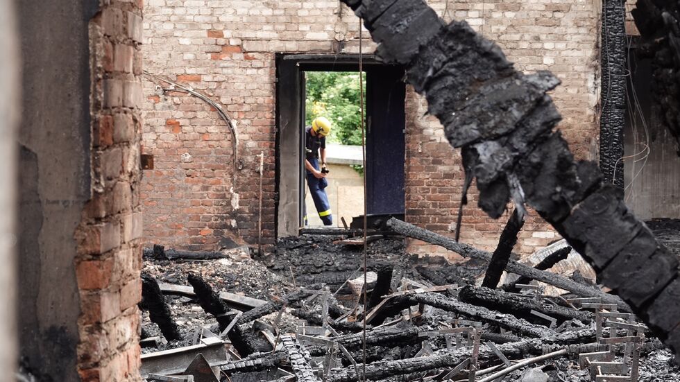 Die Feuerwehr war zudem nur noch mit rund 35 Kräften vor Ort. Das Gebäude hatte zuvor in Vollbrand gestanden. Es gab eine weithin sichtbare Rauchwolke und eine Warnung an die Bevölkerung.