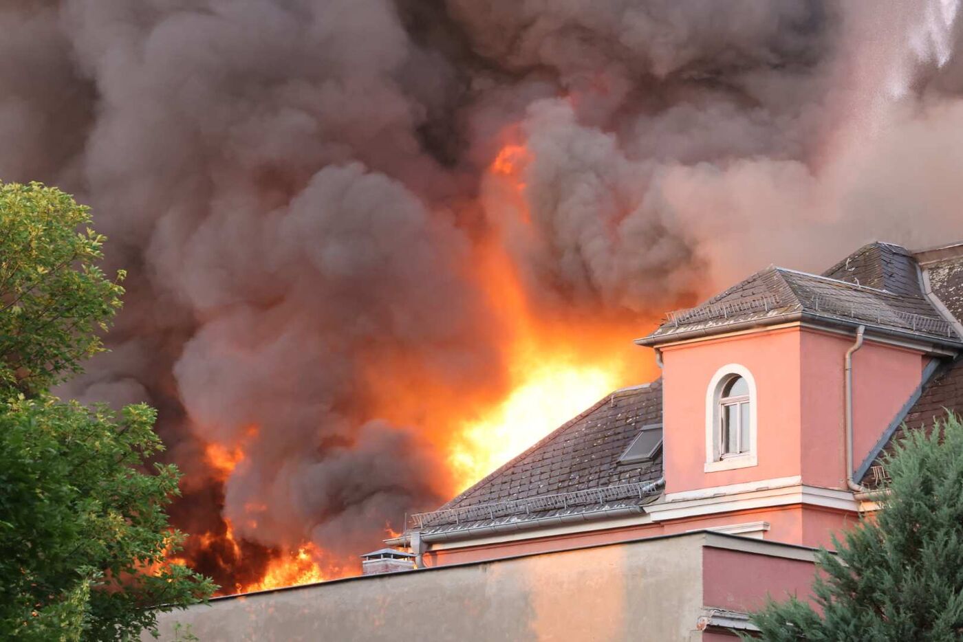 In der Warn-App Nina hieß es: „Aufgrund eines Dachstuhlbrandes in der Pirnaer Landstraße kommt es in den umliegenden Bereichen zu Geruchsbelästigung durch Brandrauch.“ Die Pirnaer Landstraße, eine wichtige Straße im Osten der Landeshauptstadt, wurde voll gesperrt. Auch der öffentliche Personennahverkehr ist davon betroffen.