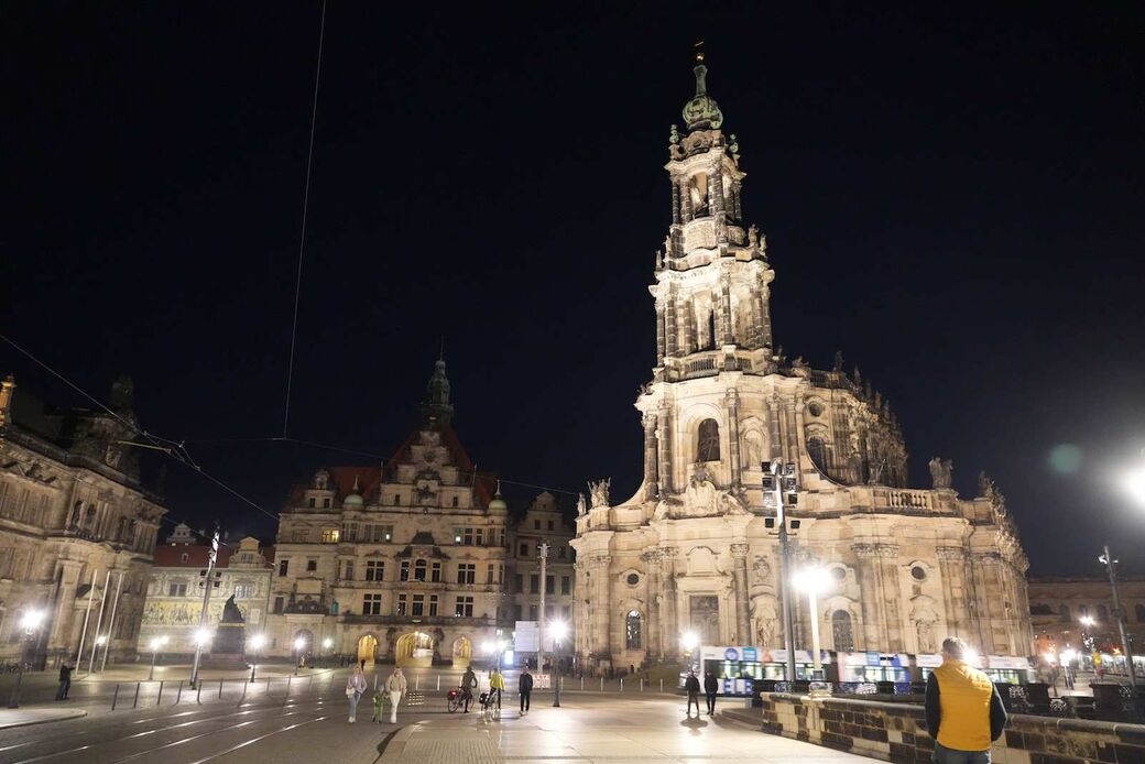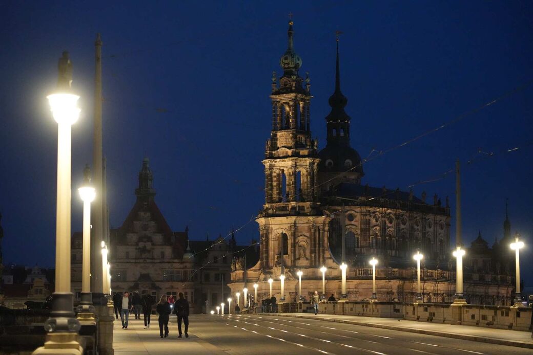 Die Außenbeleuchtung der Dresdner Frauenkirche bleibt zunächst aus. Hier kann die Stiftung selbst entscheiden. Den Angaben zufolge soll weiterhin ein solidarisches Zeichen für all jene gesetzt werden, die in Europa unter Krieg und Gewalt leiden müssen. Aber auch aus Kostengründen werden die seit Spätsommer 2022 abgeschalteten Strahler nicht aktiviert - bei einem Verbrauch dadurch von rund 18.000 kWh pro Jahr kämen Kosten von mehreren Tausend Euro zusammen. Man wolle erst im Herbst die Kirche wieder leuchten lassen, berichtet eine Sprecherin der Stiftung Frauenkirche.