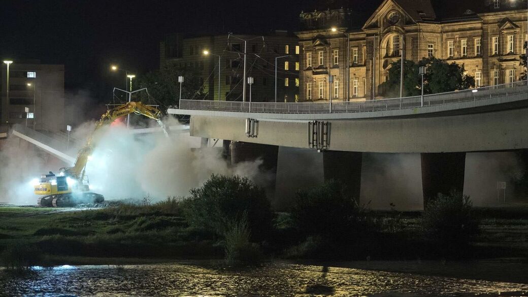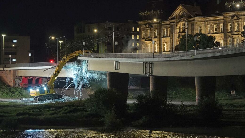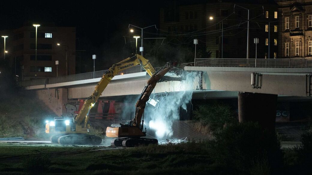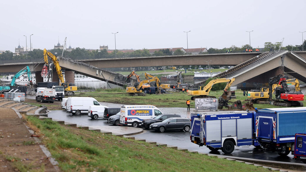 - Mit Hochdruck arbeiteten die Bagger am Abriss der Carolabrücke.
