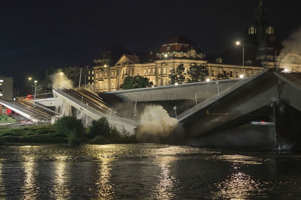 Um den Brückenteil auf der Neustädter Seite zu entfernen, waren am Donnerstagabend zwei kontrollierte Sprengungen notwendig.