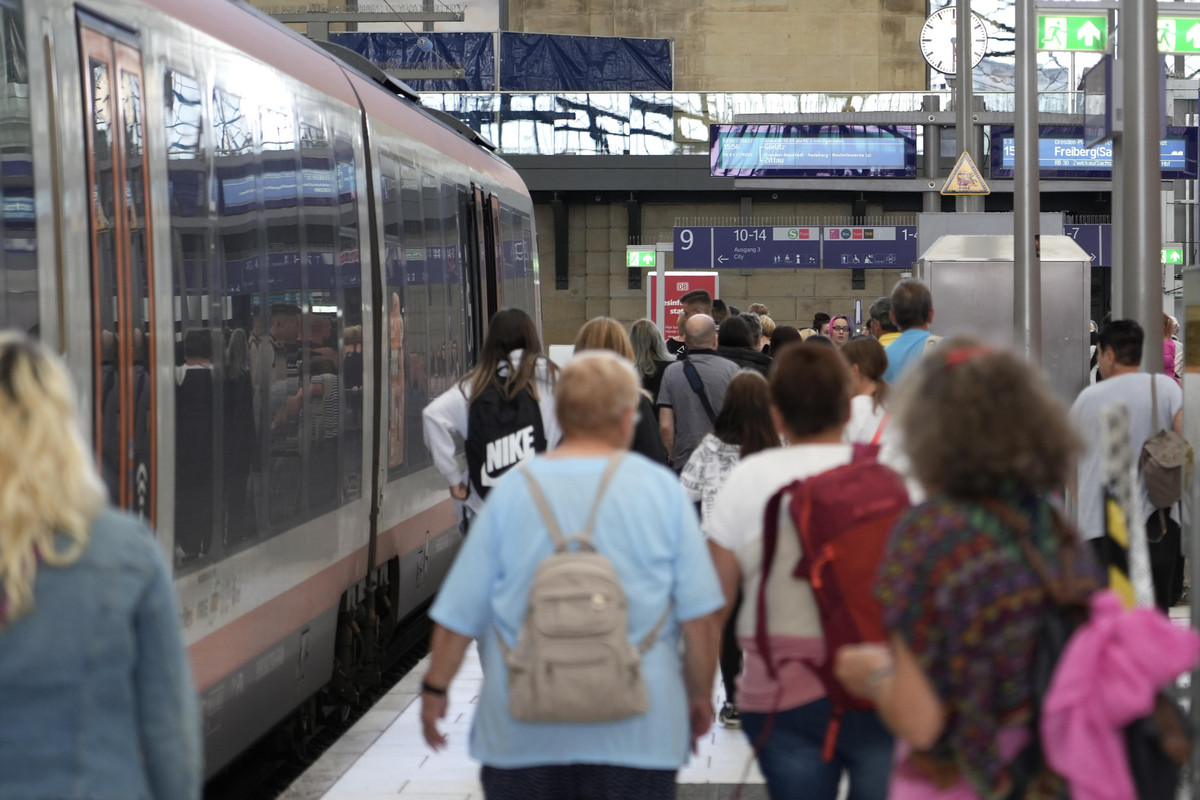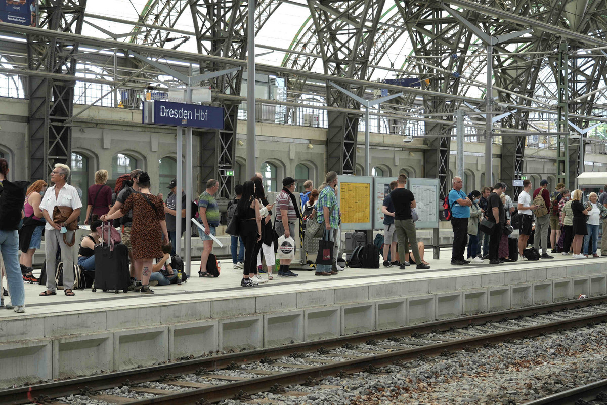 Letzter Tag für das 9-Euro-Ticket. Der Sondertarif wird von vielen bis zum Schluss ausgiebig genutzt. Am Hauptbahnhof Dresden gab es am Mittwoch zum Teil dichtes Gedränge auf den Bahnsteigen.