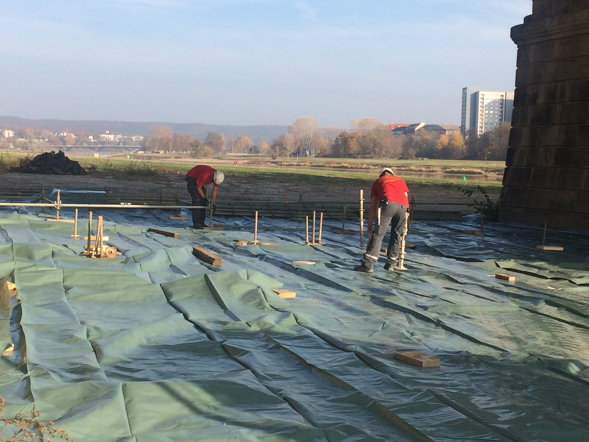 Am Mittwoch ist dafür ein großes Gerüst an der Albertbrücke aufgebaut worden. Besonderheit dabei: die Gerüstbauer sind zwei Lehrlinge aus Roßwein. Der Firma ist es wichtig, dass ihre Auszubildenden auch solche lanfristigen und außergewöhnlichen Projekte gestalten können, sagte Firmenchef Dirk Eckart. Die beiden jungen Männer befinden sich in ihrem ersten Lehrjahr und haben nun im Rahmen ihrer Ausbildung die Möglichkeit, an der Albertbrücke das Handwerk des Spezialgerüstbaus zu lernen. Als nächstes sind dann die Wasserbögen der Albertbrücke dran. Auch im kommenden Jahr gehen die Sanierungsarbeiten weiter.
