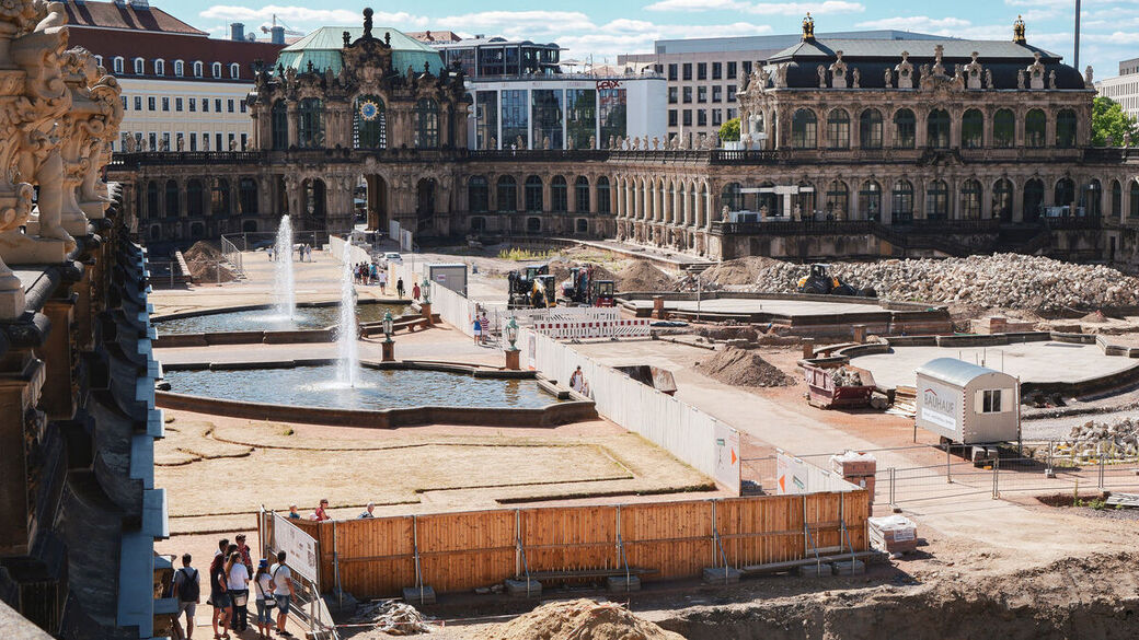 Beim Zwinger laufen die archäologischen Arbeiten weiter auf Hochtouren. Erst wenn diese abgeschlossen sind, kann die komplette Sanierung des barocken Bauwerkes starten. Aktuell sind die Forscher weiterhin im Bereich des Wallpavillons beschäftigt.