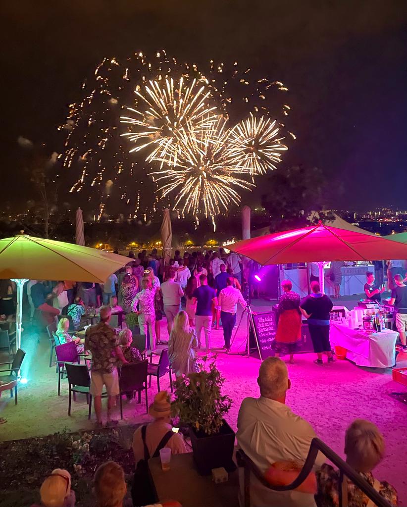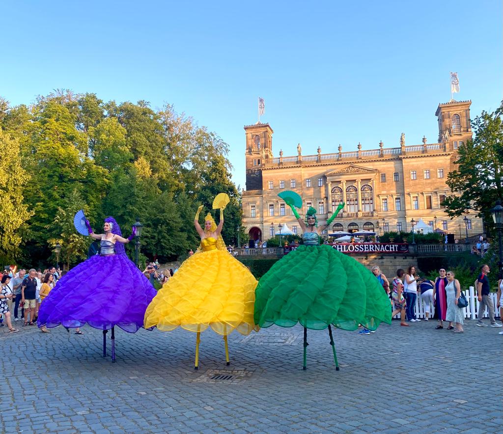 Ein besonderer Höhepunkt waren das musikalisch unterlegte Feuerwerk und die Videoprojektion auf der Fassade von Schloss Albrechtsberg. Mit bildgewaltigen Motiven wurde der Planet Erde zum Thema gemacht. Fabelwesen und Stelzenläufer begleiteten die Gäste auf illuminierten Wegen zwischen den Schlossanlagen.