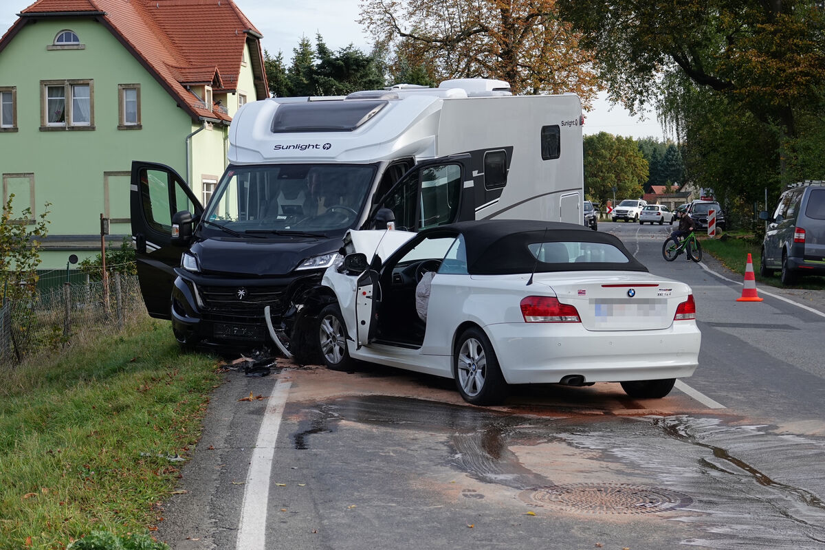 Auf der Lohmener Straße in Dresden-Oberpoyritz ist es am Montag zu einem Unfall gekommen. Laut den Informationen unseres Reporters stieß ein BMW 1er Cabrio gegen einen entgegenkommenden VW sowie ein Wohnmobil.