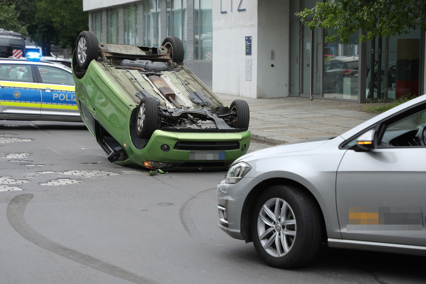 - Nach dem Zusammenstoß mit einem VW landete der Skoda auf dem Dach