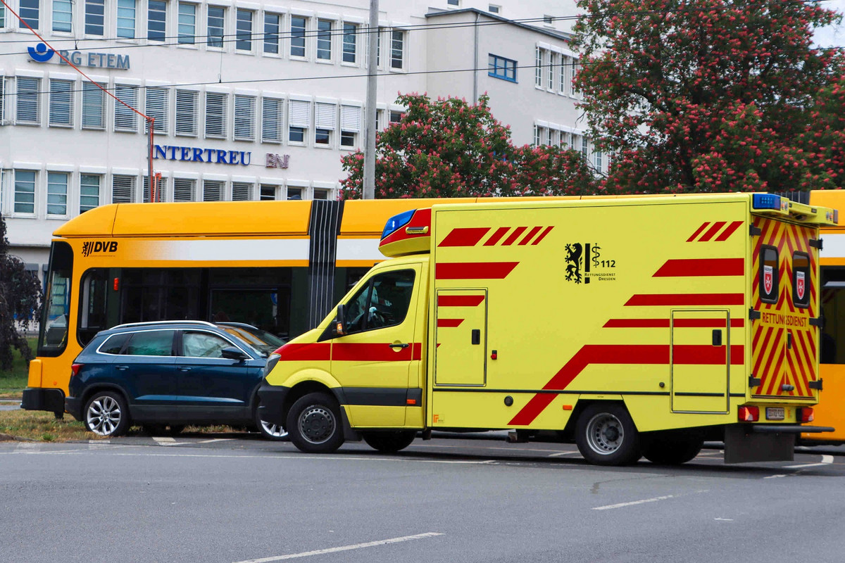 Auto und Straßenbahn stoßen auf Stübelallee zusammen