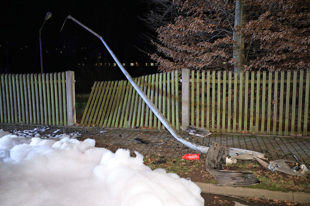 Auf der Tharandter Straße in Freital hat es am Donnerstagabend einen schweren Unfall gegeben. Ein Subaru-Fahrer war nach Informationen der Polizei gegen 22:40 Uhr in Höhe des Backofenfelsens von der Fahrbahn geraten und frontal gegen einen Lichtmast geprallt.