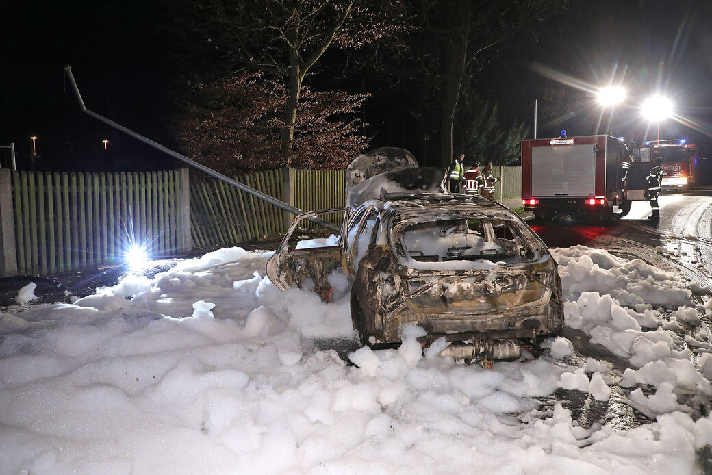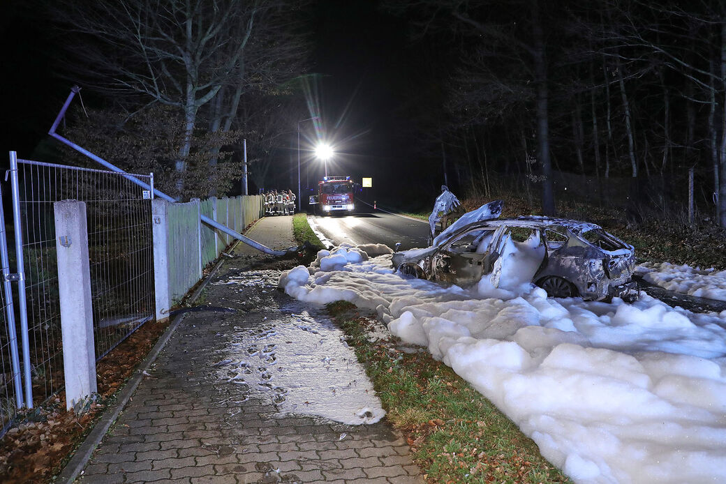 Kurz danach geriet das Auto in Brand. Der 51 Jahre alte Fahrer habe sich noch selbst aus dem Fahrzeug retten können, sei dann aber noch vor Ort seinen Verletzungen erlegen. Der Subaru brannte völlig aus. Die Feuerwehr war mit 25 Kräften vor Ort. Die S194 war stundenlang gesperrt.