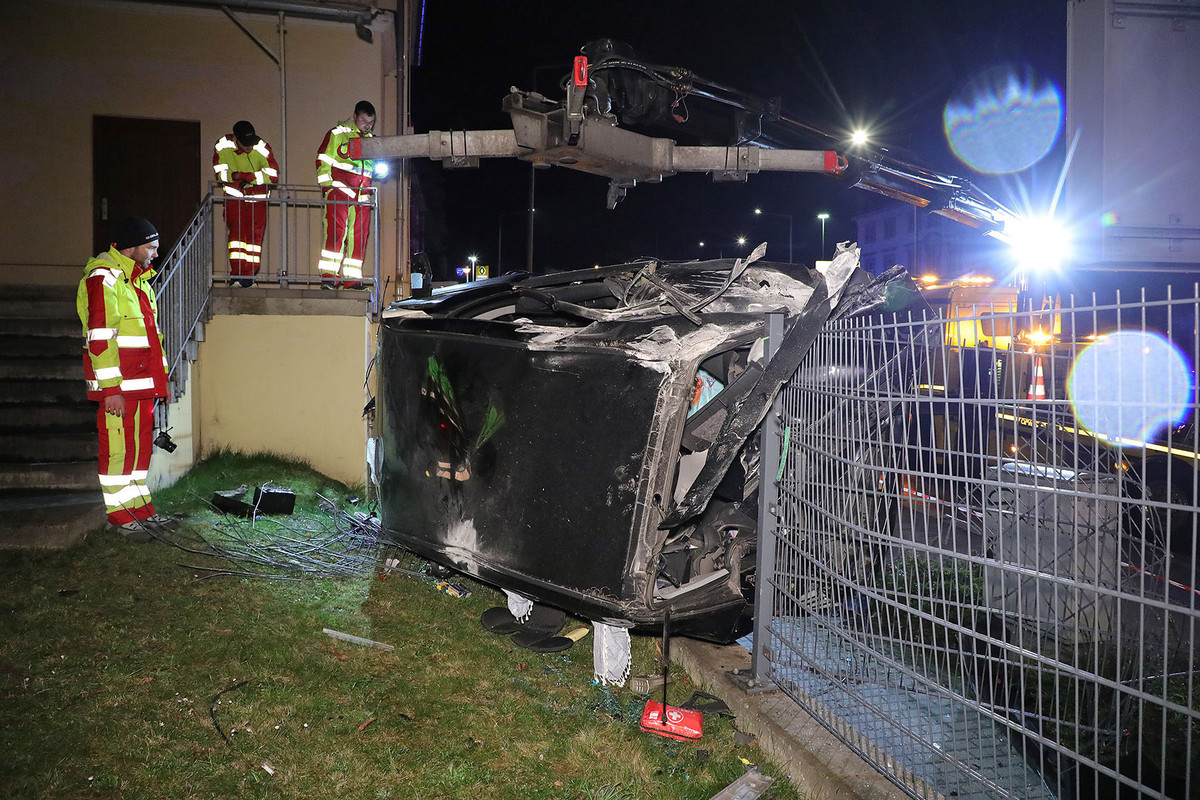 Opel kracht gegen Haus - Stromausfall an der Bergstraße