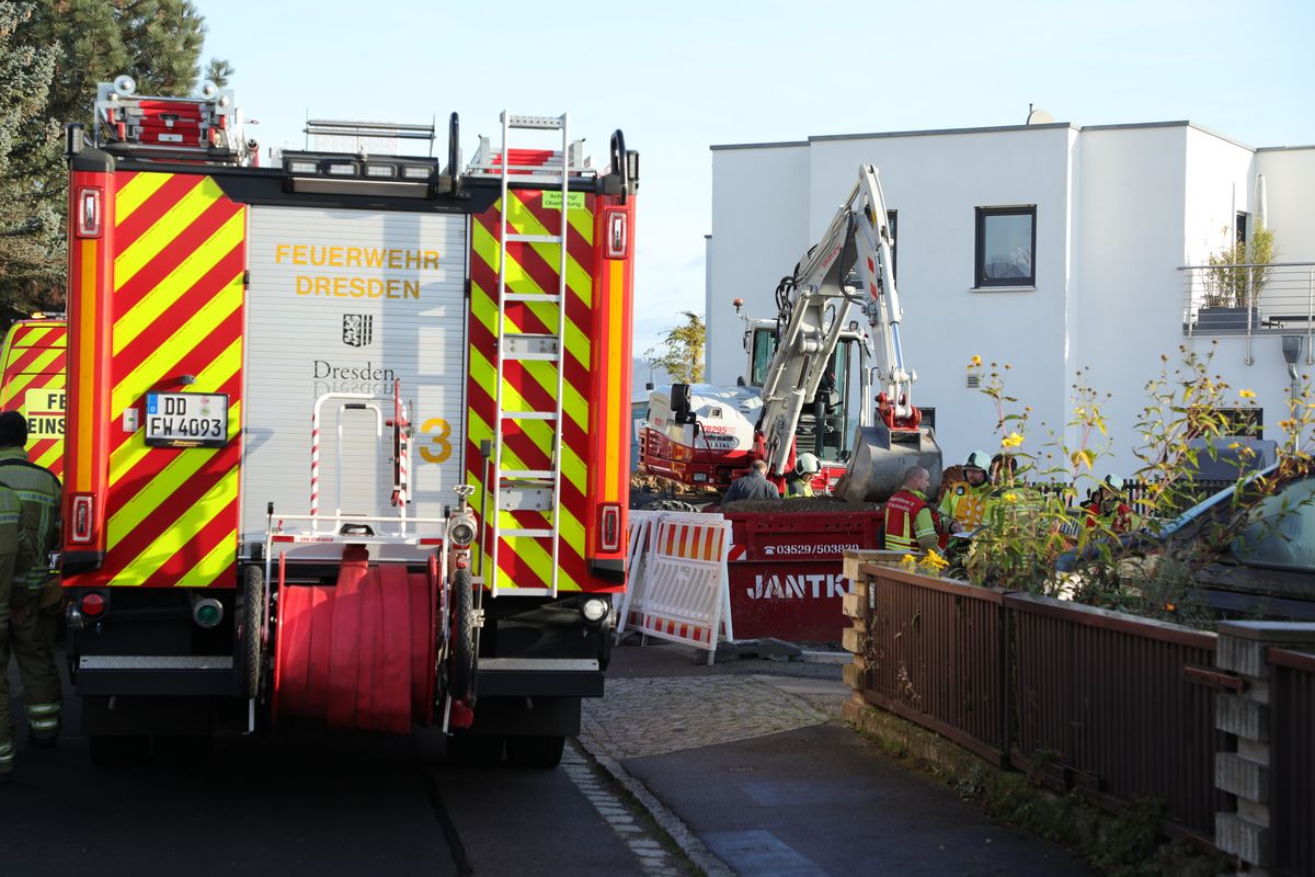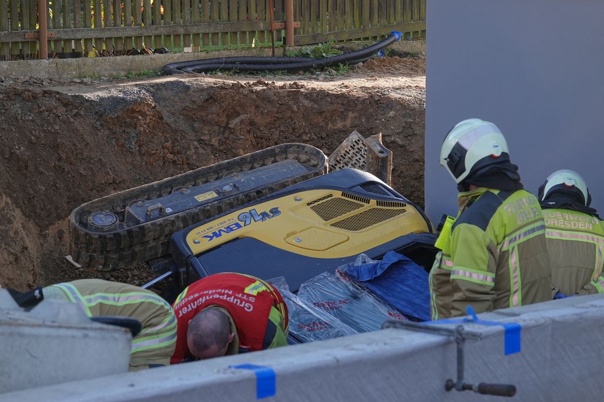 Bei Bauarbeiten ist ein Bagger umgekippt. Dabei wurde der Baggerfahrer eingeklemmt. Während ein Notarzt den Patienten stabilisiert, bereitet die Feuerwehr die Rettung vor. #EinsatzfuerDresden#Dresdenpic.twitter.com/tC0JXKQxE0
