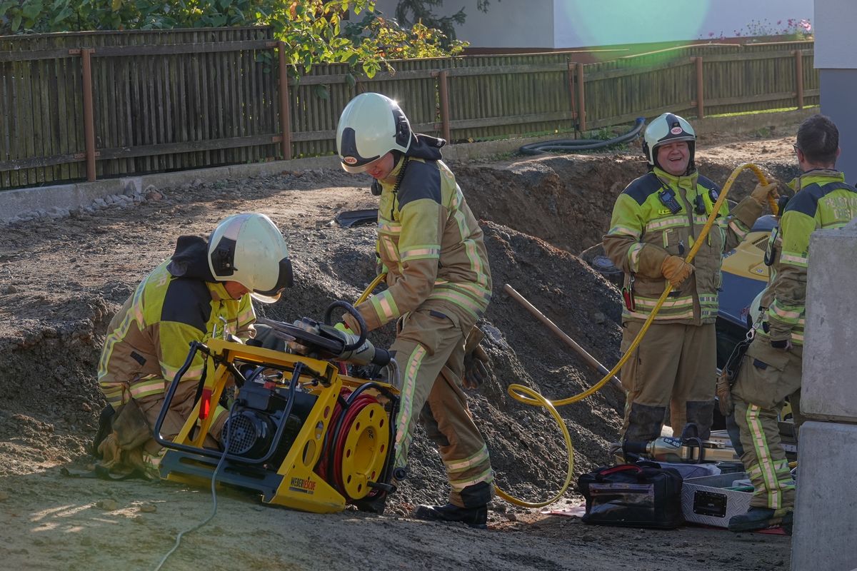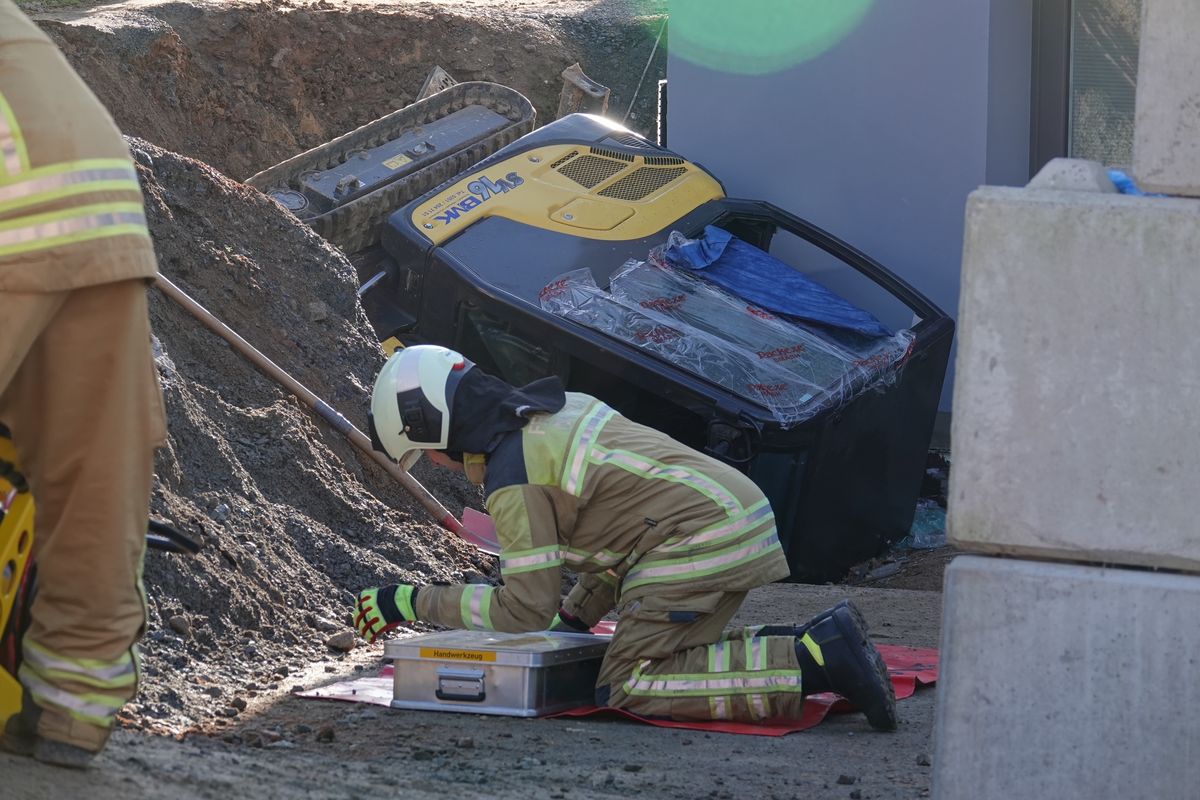 Unter anderem mit einem hydraulischen Rettungsgerät wurde der Baggerfahrer befreit. Der Mann wurde mit schweren Verletzungen ins Krankenhaus gebracht. Die Feuerwehr war mit 40 Einsatzkräften vor Ort. Wie es zu dem Unfall kommen konnte, ist aktuell noch nicht bekannt.