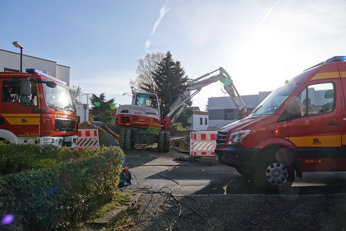 Während der Rettungsdienst sich um den Patienten kümmerte, sicherte die Feuerwehr den Bagger, um ein weiteres Abrutschen zu verhindern.