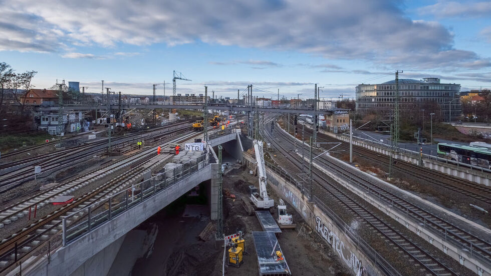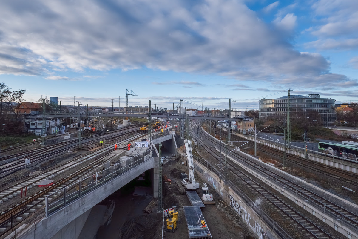 Ein Teil der Züge fährt deshalb nur bis zum Bahnhof Neustadt, der andere Teil endet bzw. beginnt in Dresden-Plauen. Das Kreuzungsbauwerk unterhalb der Brücke Budapester Straße wird in mehreren Abschnitten abgerissen und durch einen Neubau ersetzt.