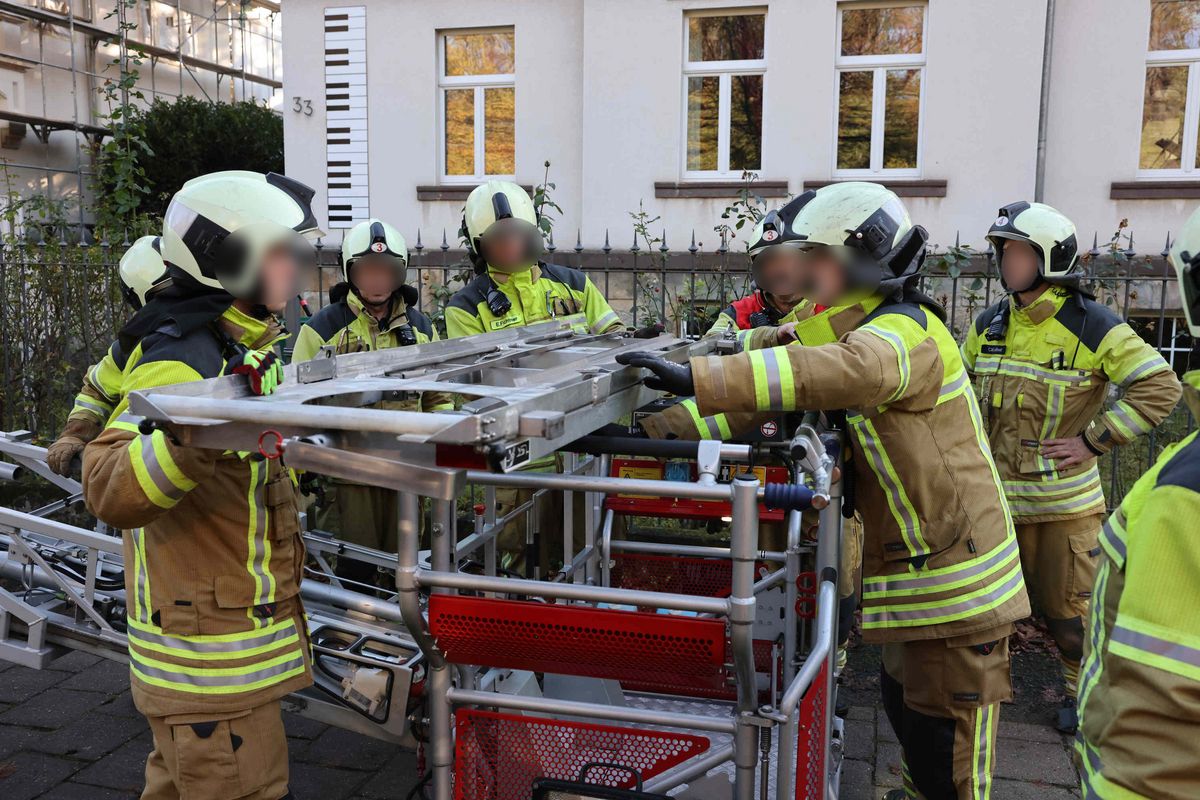 Die Feuerwehr musste den schwer verletzten Mann mittels einer Drehleiter retten. Er wurde umgehend in ein Krankenhaus transportiert. Gegen 10 Uhr war der Einsatz der Feuerwehr bereits wieder beendet. Rund 33 Einsatzkräfte waren vor Ort. Auf der Karcherallee kam es zeitweise zu Verkehrsbehinderungen. Die weiteren Hintergründe des Unfalles sind noch unklar, die Ermittlungen laufen.