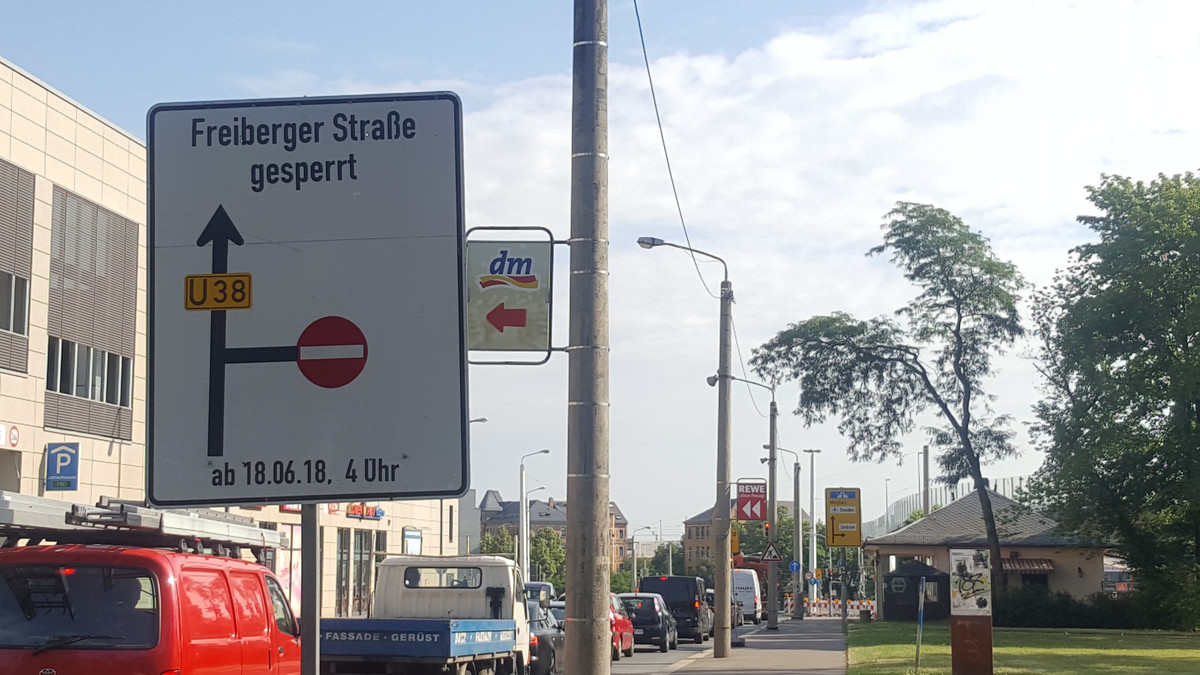 - Umleitungsschild auf der Kesselsdorfer Straße, stadteinwärts (Foto: Redaktion)