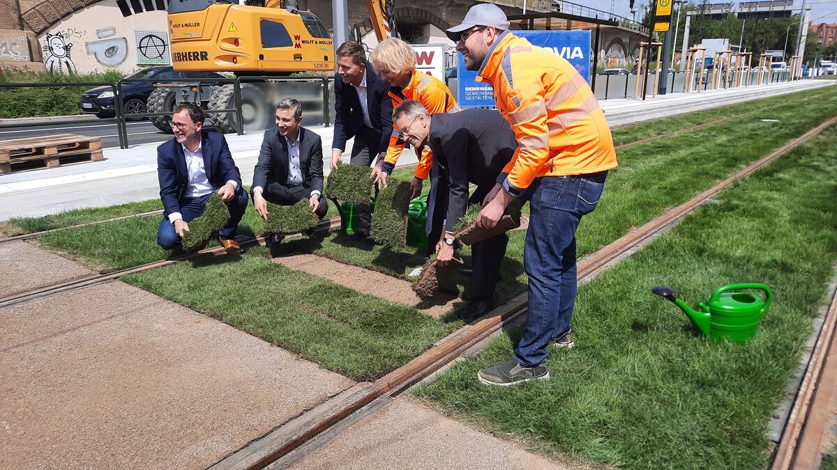 Zwischen den Schienen auf der Hansastraße wurde erstmals Rasengleis verlegt. Das soll das Stadtklima verbessern. Rund 13 Millionen Euro haben Stadt und DVB in das Projekt investiert. Ab Ende Juni sollen auf der Linie 3 auch die neuen breiteren Straßenbahnen eingesetzt werden.