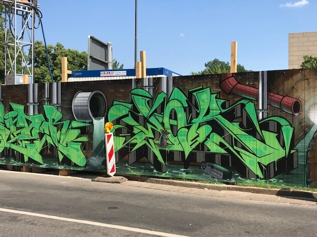 Die Stadt baut am Rathenauplatz ein größeres unterirdisches Entwässerungswerk. Die Investionen betragen rund 3,5 Millionen Euro. Der Bauzaun um das Gelände wird derzeit von Künstlern aus der Region gestaltet.Die Bauarbeiten sollen bis Januar 2020 dauern, die Behinderungen für Autofahrer etwa bis Sommer 2019.