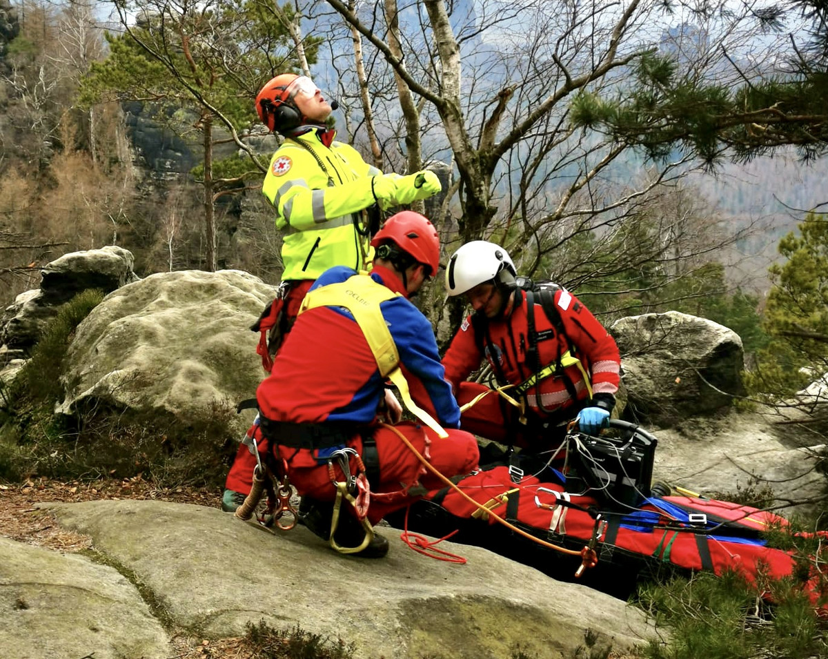 In den Affensteinen bei Bad Schandau ist am Sonntag ein Mann abgestürzt. Er wurde schwer verletzt. Nach Informationen unseres Reporters war der 45-Jährige vermutlich auf der Suche nach einem Fotomotiv, als das Unglück passierte. Der Wanderer stürzte 15 Meter tief in eine Felsspalte. Er konnte aber selbst einen Notruf absetzen und bis zum Eintreffen der Retter Kontakt halten. Mit einer Seilwinde wurde der Verletzte nach der Erstversorgung in den Hubschrauber gezogen und anschließend ins Krankenhaus nach Dresden geflogen.