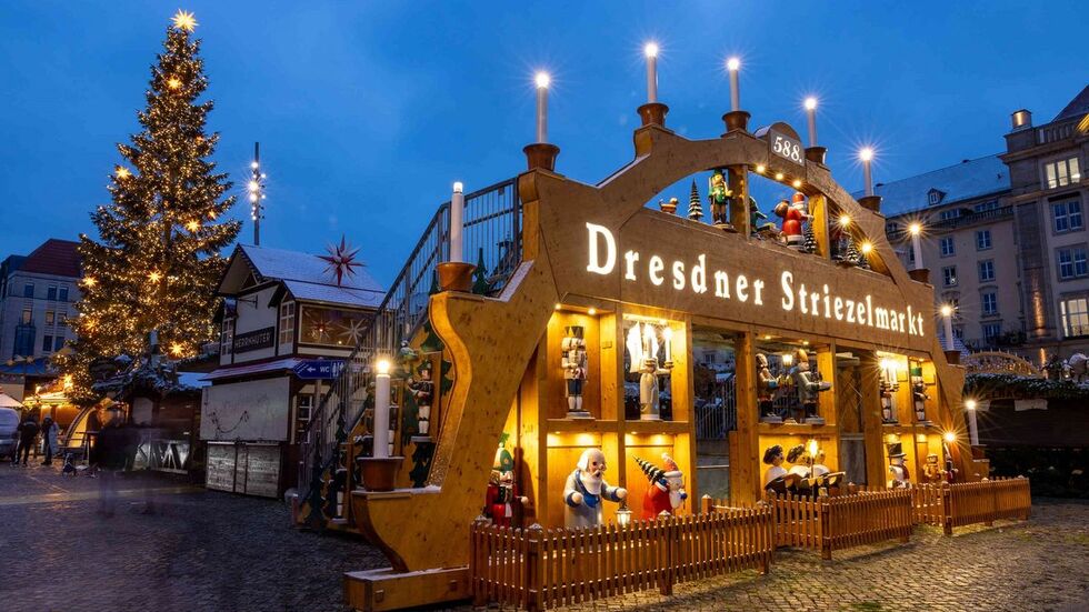 Beleuchtungsprobe auf dem Dresdner Striezelmarkt