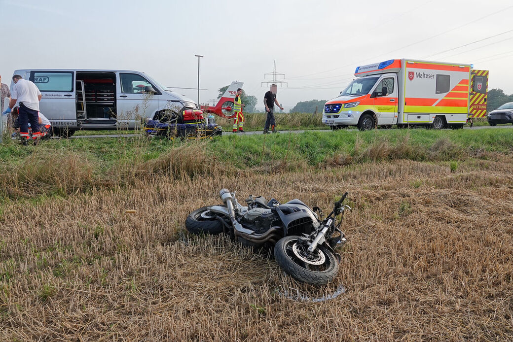 - Der schwerverletzte Motorradfahrer wurde mit dem Rettungshubschrauber ins Krankenhaus geflogen