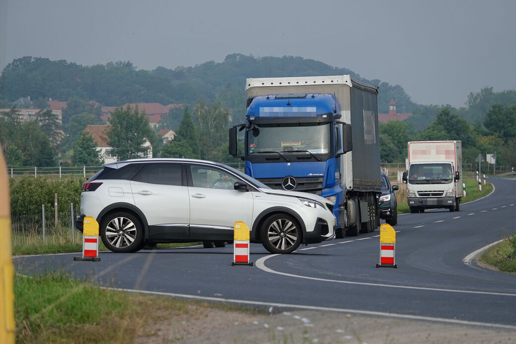 Biker prallt bei Coswig gegen Straßenschild