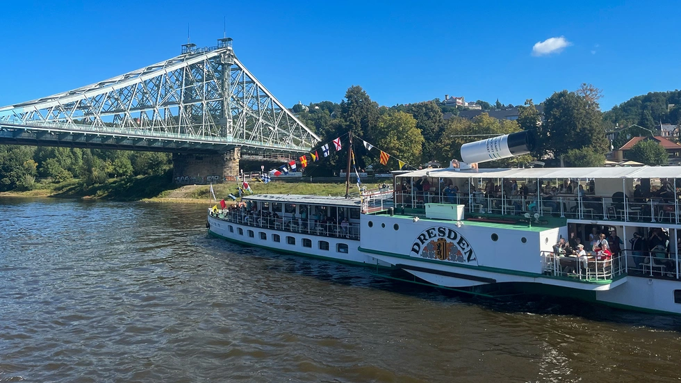 Am Blauen Wunder in Dresden muss der Gerüstaufbau über der Fahrbahn um sechs Wochen verschoben werden. Beim Austausch einzelner Stahlteile seien „unerwartete Abweichungen“ im Tragwerk festgestellt worden, heißt es von der Stadt.