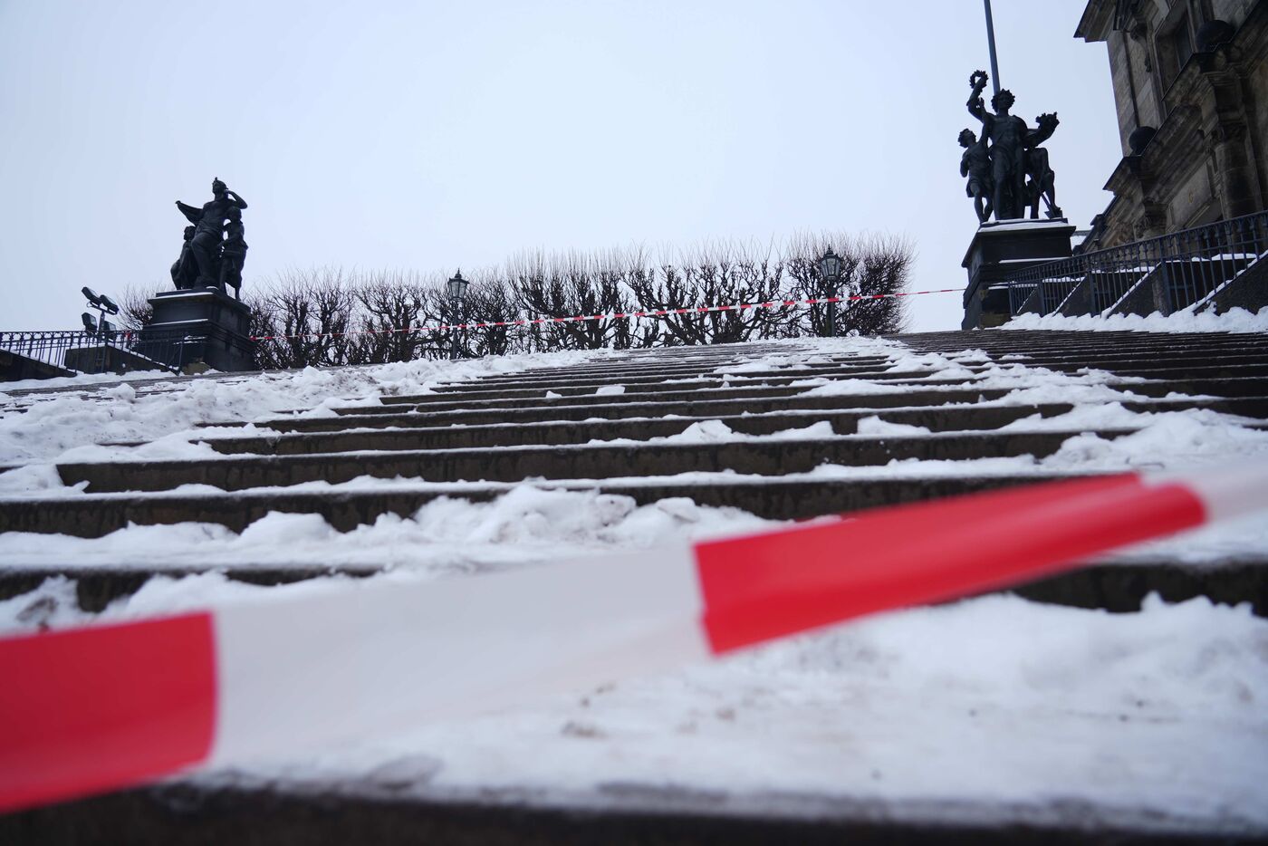 - Auch Die Brühlsche Terrasse wurde wegen Glätte abgesperrt