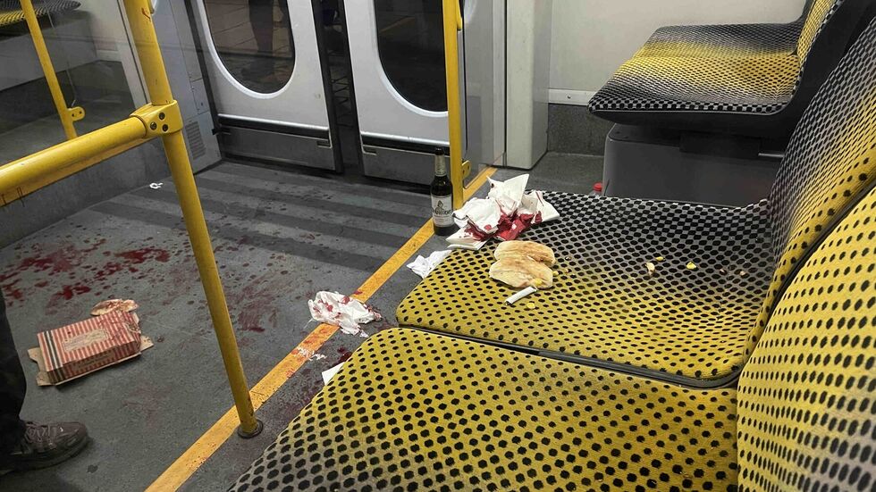 - Die blutverschmierte Straßenbahn nach der Attacke.