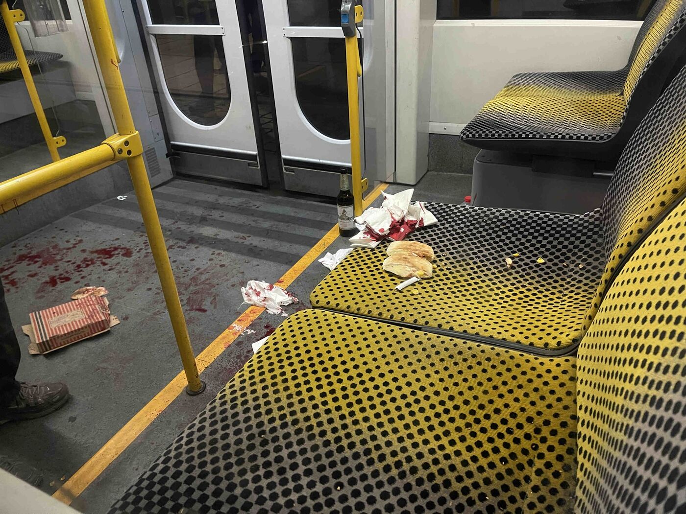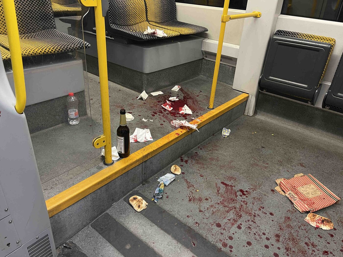 - Die blutverschmierte Straßenbahn nach der Attacke.