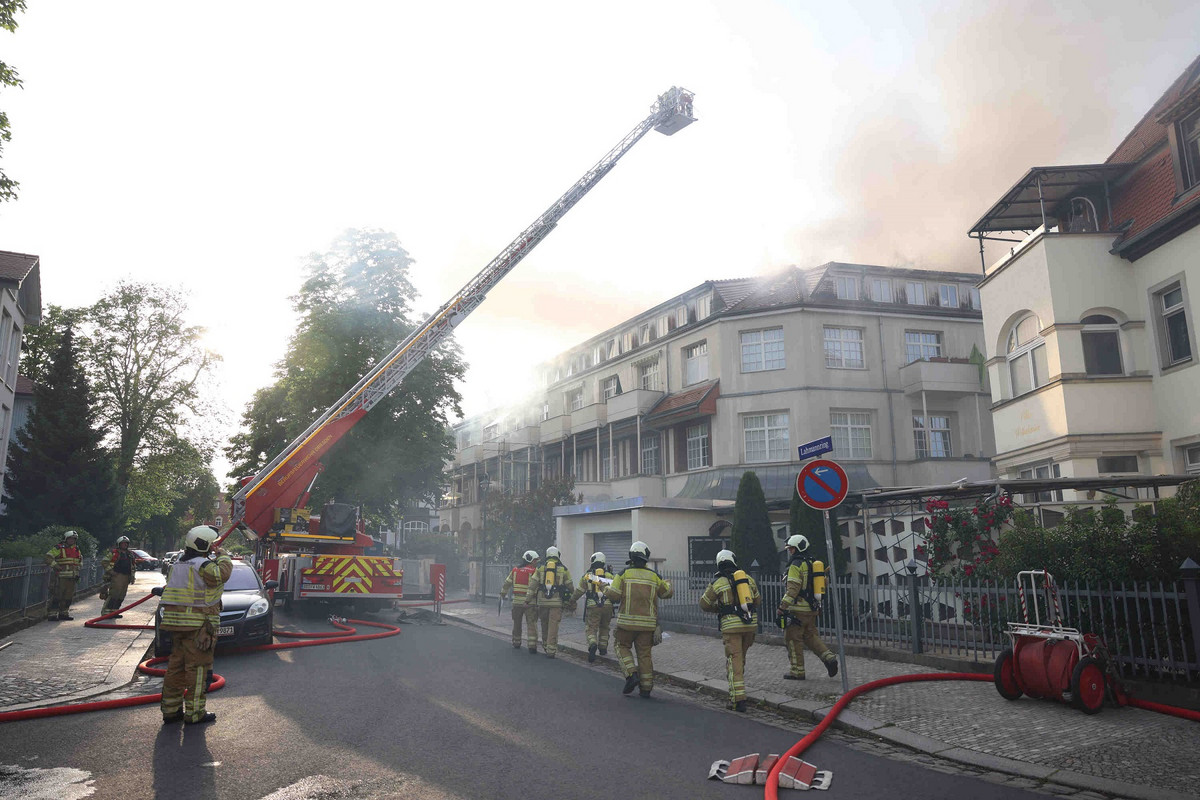Am Weißen Hirsch in Dresden hat es einen Großbrand in einem Seniorenheim gegeben. In dem Gebäude war am Sonntagnachmittag der Dachstuhl in Flammen aufgegangen. Der Brand breitete sich schnell auf die dritte Etage darunter aus. Wie uns Feuerwehrsprecher Michael Klahre am Montagmorgen sagte, wurden 17 Menschen durch die Rauchgase verletzt und in ein Krankenhaus gebracht. Auch fünf Einsatzkräfte wurden leicht verletzt, sie konnten jedoch noch vor Ort ambulant behandelt werden. Die Polizei hatte zunächst von keinen verletzten Personen gesprochen.