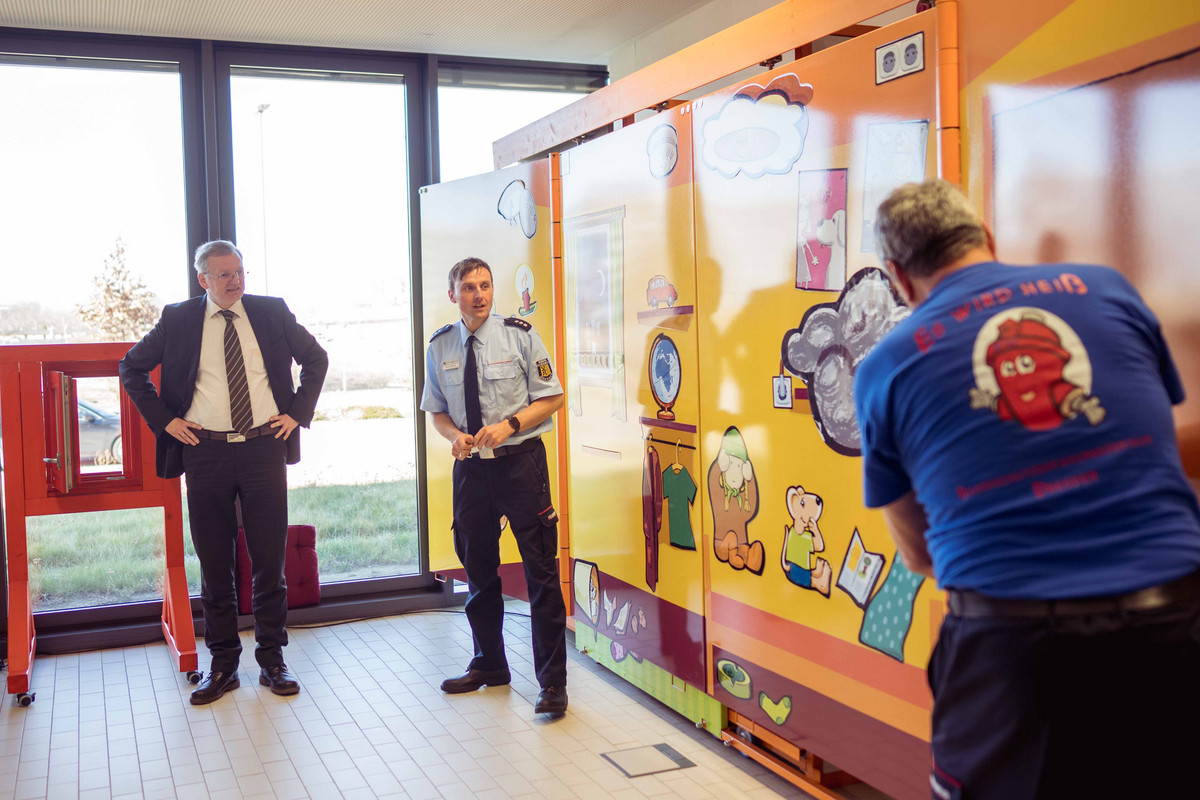 Neu ist zum Beispiel ein digitales Smartboard und auch eine Steinzeithöhle mit Spezialeffekten wie Feuer und Rauch. An einer interaktiven Wand sollen vor allem die Jüngeren spielerisch lernen, welche Gegenstände nicht in ein Kinderzimmer gehören, von Feuerzeug bis hin zu defekten Rauchmeldern. Zudem stehen die insgesamt 22 Dozenten von der Feuerwehr Rede und Antwort. Sie erklären auch, wie man den Notruf richtig wählt.