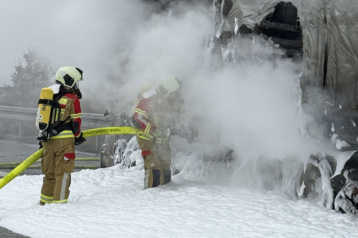 Der Sattelzug war am Mittag in Flammen aufgegangen. Die Feuerwehr konnte den Brand zwar schnell löschen, am Lkw entstand jedoch Totalschaden, so unser Reporter.