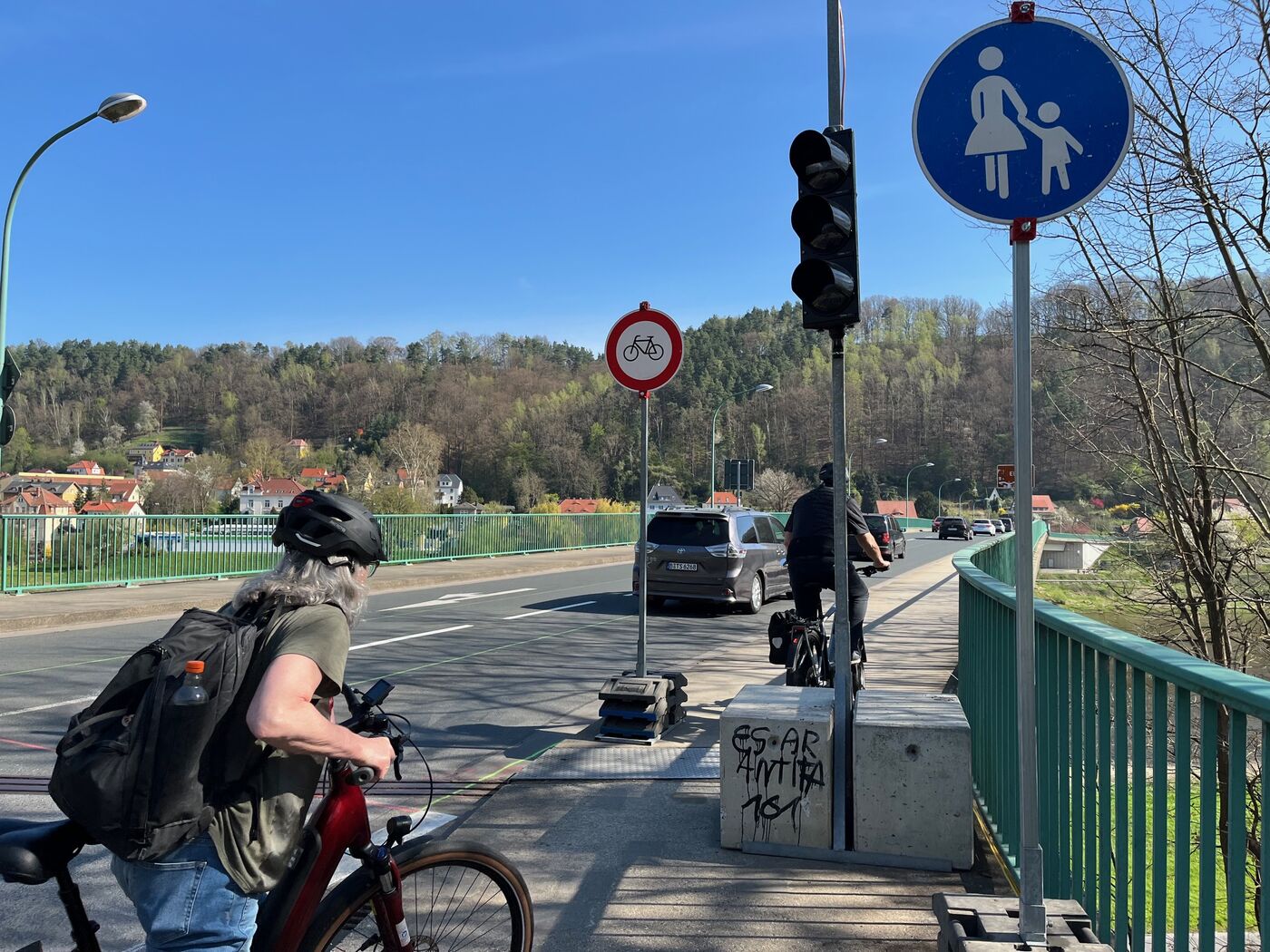 - Nun dürfen auch wieder Radfahrer über die Elbbrücke in Bad Schandau radeln