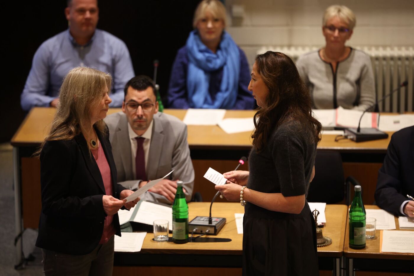 Die Neue an der Spitze wird nach ihrem Amtseid von den knapp 40 Ratsmitgliedern der Kleinstadt mit Applaus bedacht, es gibt ein Blumensträußchen. Dann geht es direkt weiter mit der Tagesordnung in dieser ersten, konstituierenden Sitzung des neu gewählten Stadtrats.
