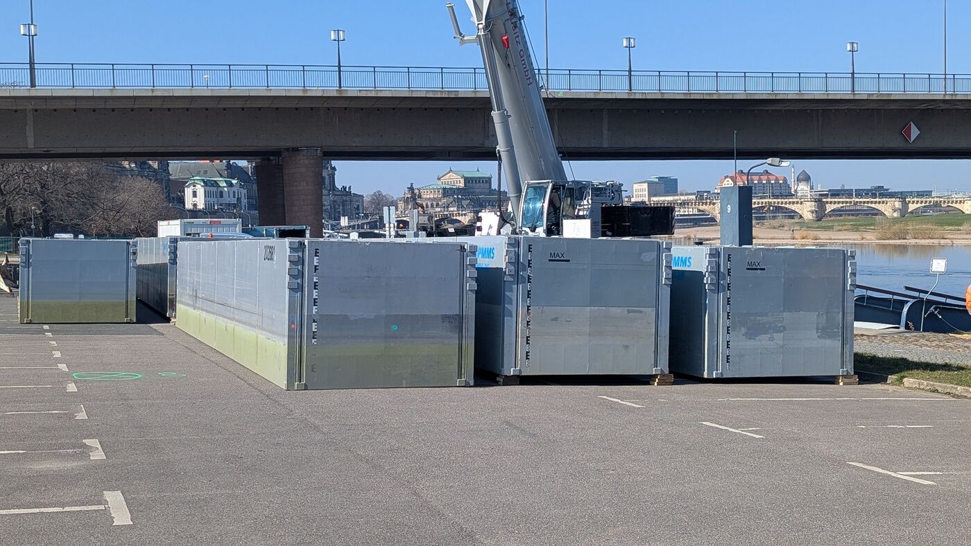 Carolabrücke: Aufbau der Schwimmplattformen startet