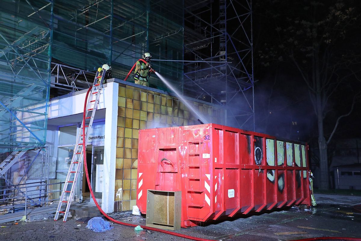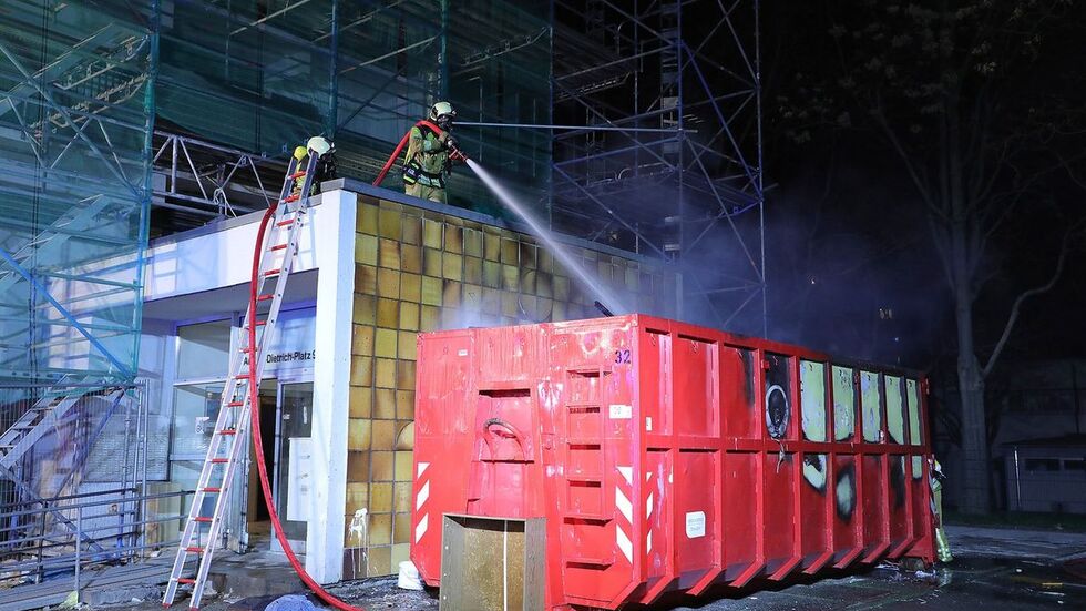 Containerbrand droht auf Wohnhaus überzugreifen: Feuerwehrfrau verletzt