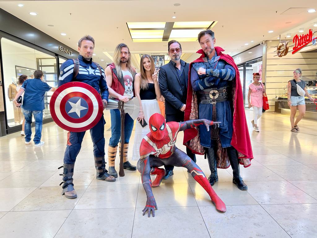 - Schnappschuss mit den Marvel-Helden Spiderman, Doctor Strange, Iron Man, Thor und Captain America.