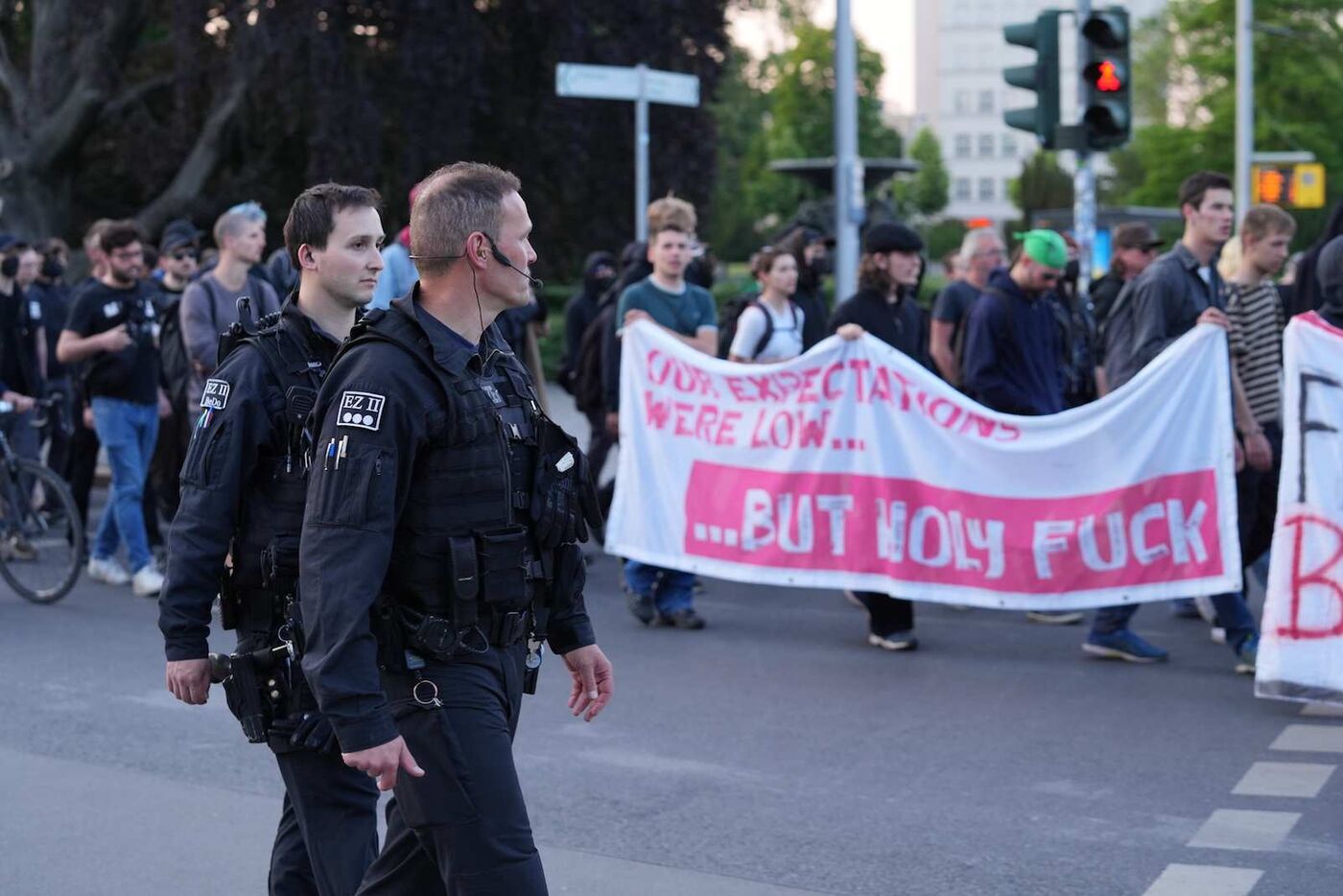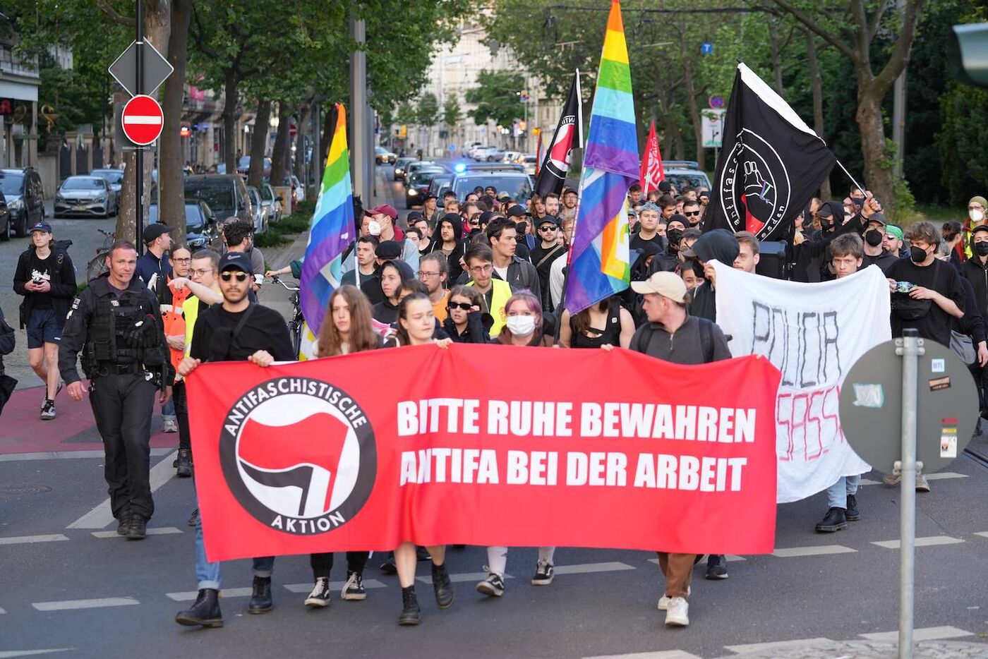 Mit Sprechchören und Beschimpfungen richteten nach Informationen unseres Reporters ihren Unmut gegen die Sicherheitskräfte. Der Hauptgrund für die Demonstration war die Solidarität mit der erst diese Woche in Dresden verurteilten Linksextremistin Lina E. Darüber hinaus kritisierten die Demonstranten den Polizeieinsatz in Leipzig scharf