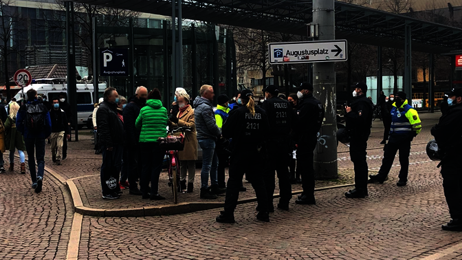 Laut Polizei ist die Lage in Leipzig derzeit entspannt. Trotz der Absage der Anti-Corona-Demo finden einige Gegenproteste statt. Unterdessen diskutiert noch eine handvoll von Corona-Kritiker auf dem Augustusplatz mit der Polizei über das ausgesprochene Versammlungsverbot.